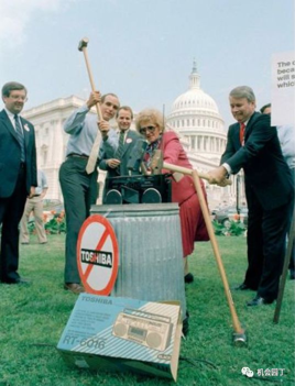 当时正值美日贸易摩擦,美国议员借机在电视上表演怒砸东芝收录机