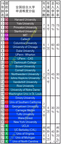 难度最大的学校,入学率 yield rate (收到录取的学生的报到入学率)比较高,比如哈佛斯坦福,入学率高达80%以上。