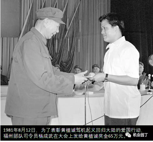 有来有往:1981年从台湾驾机飞到大陆的黄植诚少校获奖黄金千两。