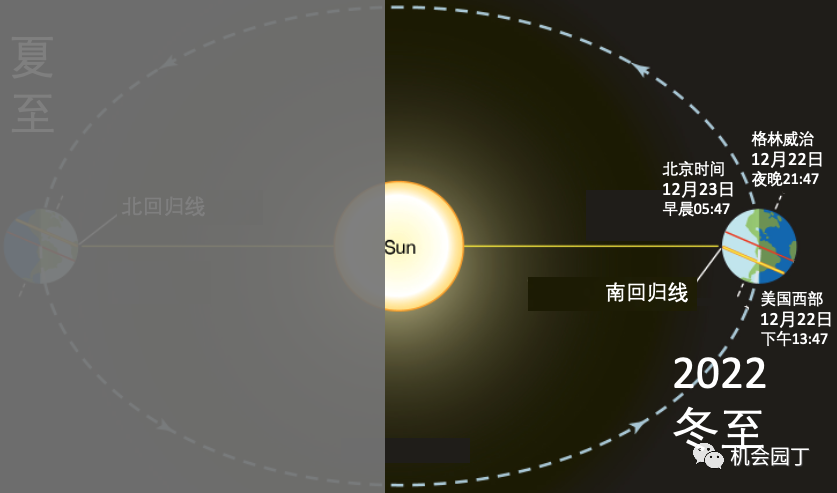 以冬至为例,冬至是太阳直射南回归线的时刻。